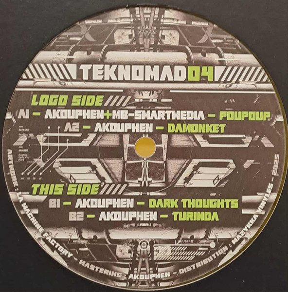 Teknomad Records A1 Poupoup https://ultimatehousemerchandise.com/wp-content/uploads/Teknomad-04-A1-ac.mp3 A2 Damonket https://ultimatehousemerchandise.com/wp-content/uploads/Teknomad-04-A2-ac.mp3 B1 Dark Thoughts https://ultimatehousemerchandise.com/wp-content/uploads/Teknomad-04-B1-ac.mp3 B2 Turinda https://ultimatehousemerchandise.com/wp-content/uploads/Teknomad-04-B2-ac.mp3